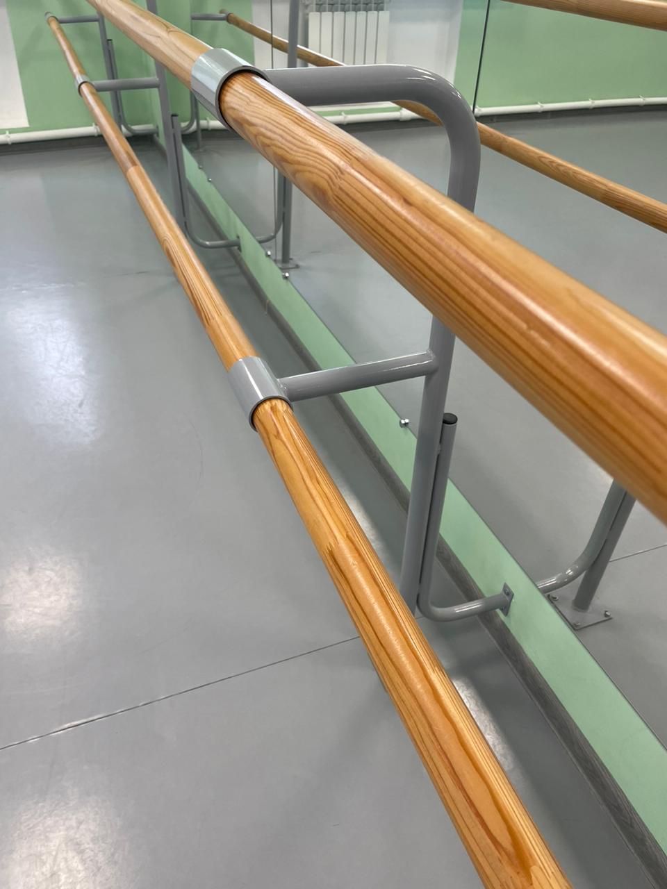 Балетные хореографические станки и комплектующие к ним жерди из бука и сосны, дуба а также металлические стойки и кронштейны.