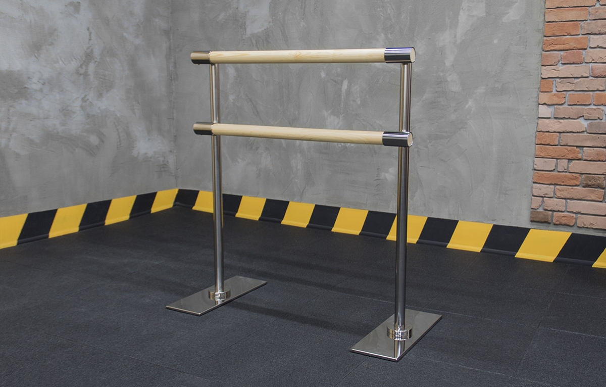 Балетный станок из нержавеющей зеркальной стали с двумя поручнями. Длина напольной части (глубина): 30 см. Высота хореографического станка: 110 см. Высота от пола до верхней части нижнего поручня: 80 см. Высота от пола до верхней части верхнего поручня: 110 см. Цельносварная конструкция опор. Опоры выполнены из нержавеющей стали, профиль 30х30. Тип крепления – напольный (6 точек крепления к полу). Диаметр муфт подходит под поручни диаметром 47-50 мм. В комплекте с опорами балетных станков поставляется комплект крепежа к полу: пластиковые дюбели 12х70 мм и шурупы 8х70 мм с шестигранной головкой, а также установочные винты для поручней в количестве 2 шт на каждый поручень. Деревянный поручень (жердь) для балетного станка изготавливается из высококачественной древесины – сосна, бук, дуб.