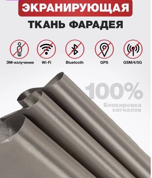 Оптимально подходит для использования в качестве защиты окон от РЧ излучения, штор, защитной одежды от РЧ излучения, экранирующих палаток и т.д. блокирует GSM, 3G, LTE, Wi-Fi, Bluetooth, сигналы мобильных телефонов! Легко прошивается швейными машинами и гарантирует высокий уровень подавления сигналов даже от сотового телефона. Материалы блокируют радиосигналы, RF-сигналы. Подходят в качестве подкладки при изготовлении штор, ширм, палаток, пододеяльников, матрасов, кошельков, обложек для паспорта, чехлов для телефона. Позволяют блокировать сигнал сотовой связи, Wi-Fi. Осуществляют экранирование штор, стен, окон, спальных мест, элементов одежды. Экранирующая ткань оптимально подходит для экранирующих навесов и штор, рабочей одежды, радиозащитных кожухов, чехлов для различных приборов и т.п.
